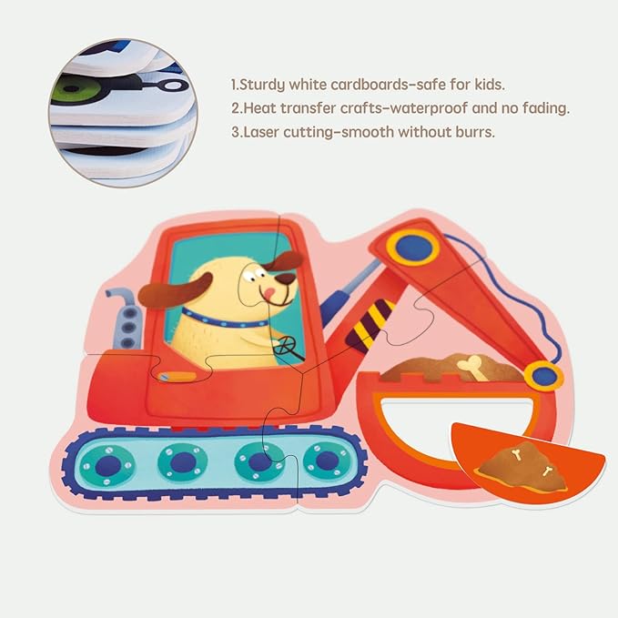 Toi 6 Packs Large Piece Toddler Jigsaw Puzzles for Kids Aged 2.5+, Animal Shaped Floor Puzzles for Beginner, Preschool Learning Game for Boys Girls, Shape Vehicle