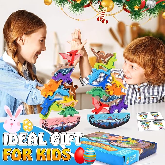 Dinosaur Toys for Kids 3-5: Wooden Stacking Montessori Toys for 3 4 5 6 7 Year Old Balance Competition Game for Family Ideal Christmas Birthday Gifts for Kids Ages 3-7 (Double Version)