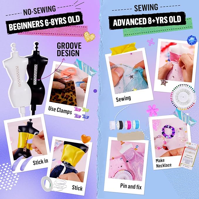- 6 MANNEQUINS DISPLAY MORE DESIGNS: The newest fashion design kit includes 6 mannequins for display, along with detailed instructions and tutorial videos for making clothing styles. The set also comes with several clothing templates. A perfect kit for beginners who love fashion design.