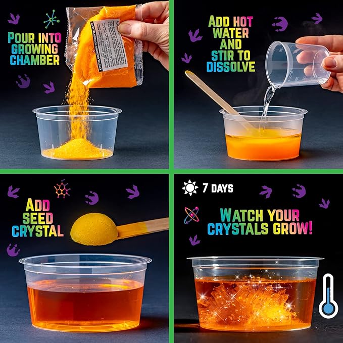 - Complete Crystal Kit: This comprehensive crystal grow kit includes crystal compound powder, dinosaur figures, and a transparent terrarium. Children can enjoy crafting their own mini dinosaur garden while engaging in educational exploration
