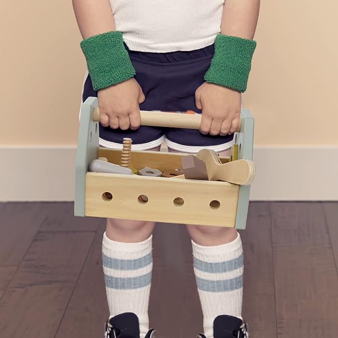 - Screwdriver Board: The My first toolbox set includes 1 toolbox,2 wooden screw board, 4 pcs matching screws of various kinds, 3 pcs screw nuts, 1 wooden hammer, 1 wooden spanner, and 1 wooden flathead screwdriver. The tool kit also comes with a portable drawstring bag for easy storing.