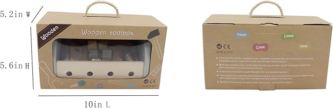 - Screwdriver Board: The My first toolbox set includes 1 toolbox,2 wooden screw board, 4 pcs matching screws of various kinds, 3 pcs screw nuts, 1 wooden hammer, 1 wooden spanner, and 1 wooden flathead screwdriver. The tool kit also comes with a portable drawstring bag for easy storing.