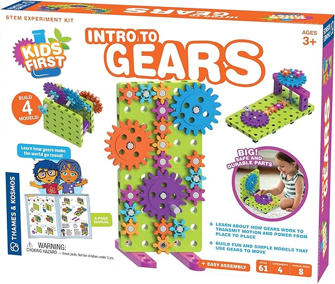 Thames & Kosmos Kids First: Intro to Gears STEM Experiment Kit for Ages 3+ | Build 4 Models, Learn About Gears, Power & Motion | Intro to Mechanical Engineering for Young Learners | Durable Parts
