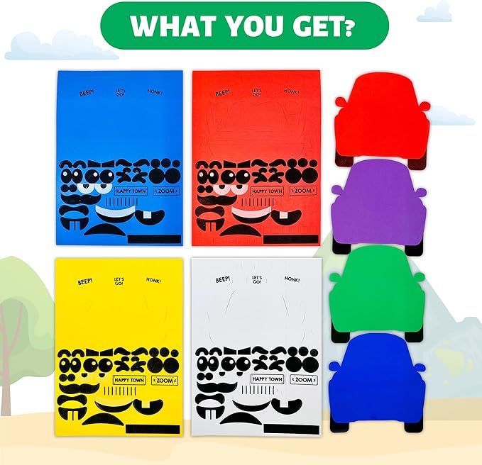 - Child-friendly and Safety: These foam crafts are made of premium soft and thick EVA foam which is green-minded, child-safe, no odor. No glue, no scissor needed, children can easily tear off perfect cut pattern and then stick on unfinished cars. Enjoy the craft time Safely!