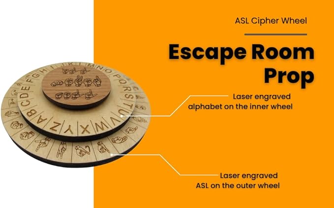 Wooden ASL Cipher Wheel & Decoder | Educational STEM Tool for Learning American Sign Language & Cryptography | Unique Gift for Teachers & Students, Durable Escape Room Puzzle Prop