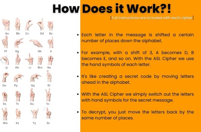 - COMFORTABLE SIZE & READY TO USE | Measures 4.4 inches diameter, our ASL cipher wheel has a commanding presence and is easy to read. It arrives fully assembled and includes clear instructions to get you started on decoding and creating secret messages in minutes.