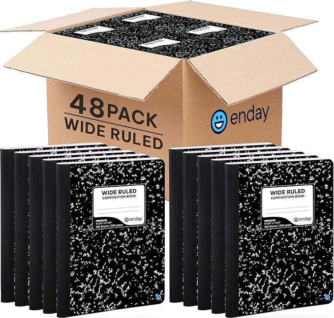 Emraw Composition Notebooks Bulk, Wide Ruled Writing Journals in Bulk, Marble Style Hard Cover Composition Book with Lined Paper, Bulk Student Notebooks for School Supplies, 100 Sheets, Pack of 48