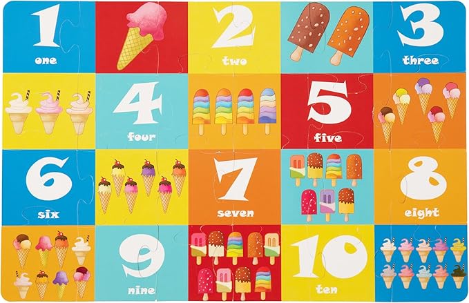 - DOUBLE-SIDED PUZZLE: This 2-in-1 jumbo floor puzzle includes a vibrant multicultural splash park scene on one side and a counting activity with ice cream treats on the other. Designed for ages 3–5, it combines imaginative play with early number recognition in a playful and engaging way.