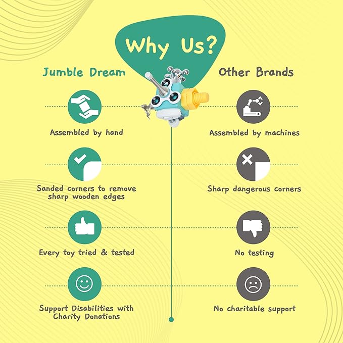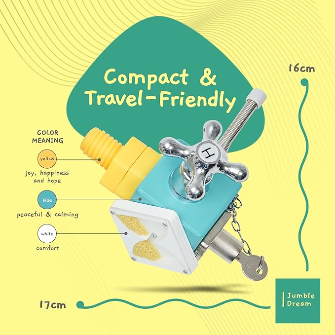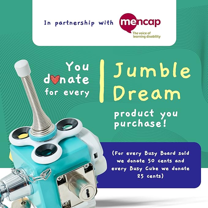 - HANDMADE WITH QUALITY CARE: Jumble Dream's busy board cube and autism sensory product is proudly handmade and creatively designed to offer hours of sensory toy play! Keeping your child's safety above all, this montessori toy is made of premium wood, has sanded edges and coated with non-toxic paint.