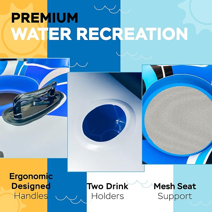 - HIGH QUALITY THICK MATERIAL - Made with heavy duty PVC material, this river float is built to last. The PVC has an updated thickness (2022) and is puncture-resistant. It is BPA-Free and does not have phthalates.