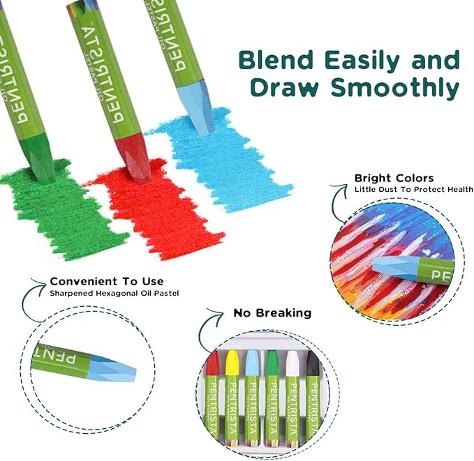 - 【Non-Toxic & Safe Materials】Oil Pastels made of high quality materials,Planter oil,Wax and Calcium Carbonate material, It's Conform to ASTM & CE Standards. Safe and Non-Toxic. These oil pastels for kids daily drawing and coloring is safe,non-irritating skin,write or paint smoothly,not easy to break and stuck.