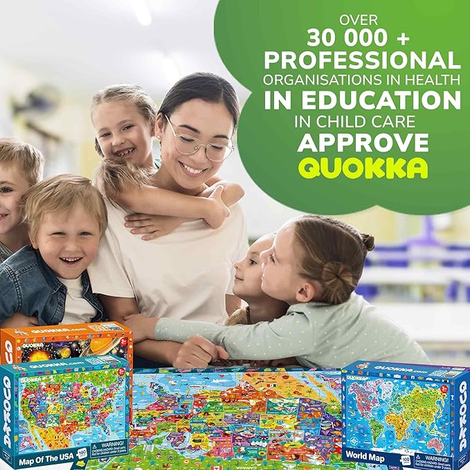 - 100 PIECE USA MAP PUZZLES: high-quality thick cardboard puzzles with irregular shapes will be fun learning us map puzzle for kids ages 6-8; The storage boxes show finished puzzle artwork to follow; Try our observational sudoku 60 piece puzzles for kids by QUOKKA