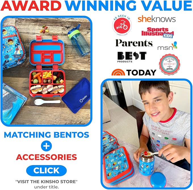 - WHAT YOU GET: *Authentic Kinsho bento box with removable tray. *Insulated lunch bag. *Steel food thermos jar. *Ice pack. *Spork. *Tips + Eats eBook with 60+ Bento tips + recipes from Kinsho’s founder (a mom & award-winning mindful cooking author). *Industry leading guarantee. *Customer support from our Boston-based team.