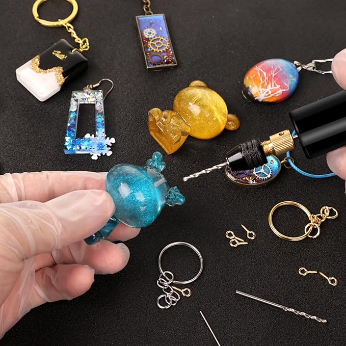 - Pay Attention: When using the resin drill, punch at a vertical angle of 90 degrees and move up and down appropriately to avoid resin chips sticking to the drill bit. This resin tools kit is perfect for drilling holes in resin, plastic, polymer clay, and beads. The jewelry resin accessories in the resin tools kit help you make necklaces, earrings, bracelets, pendants, key chains, and other DIY crafts.