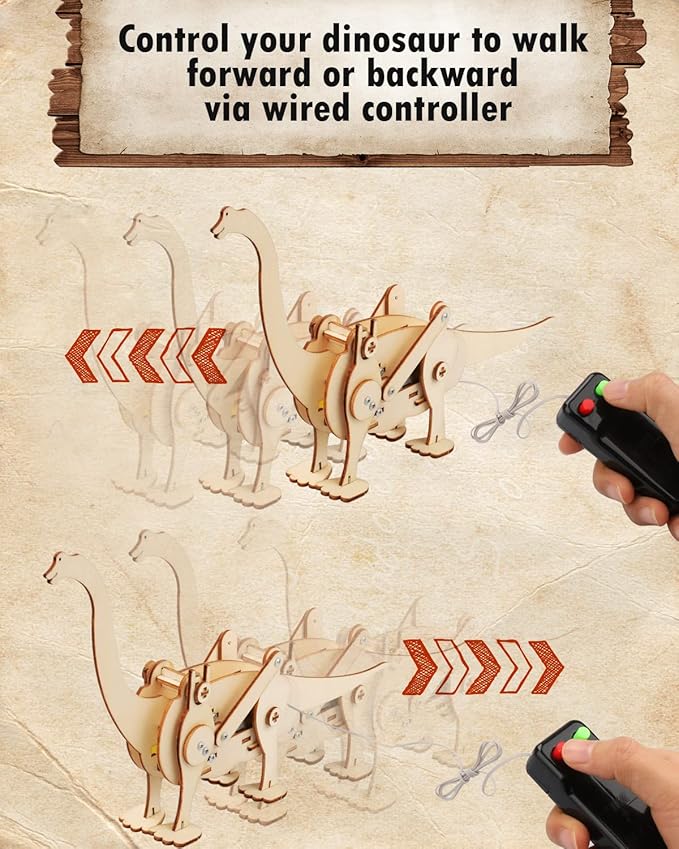 - Unique design: DIY STEM toys for ages 8-13 with wire controllers, allowing the dinosaur to move forward and backward. These wooden dinosaurs can be painted and decorated making them a unique craft kit.