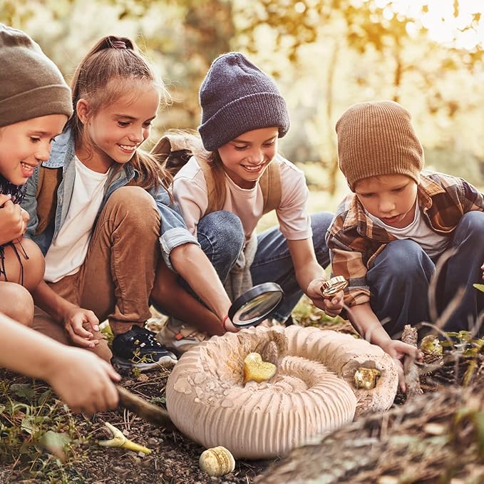 - โ๏ธEXPLORE PALEONTOLOGY โ Excavate incredible, real fossils using the included tools of the trade: 2 chisels, 2 brushes, 1 hammer, and a magnifying glass to inspect these amazing specimens!
