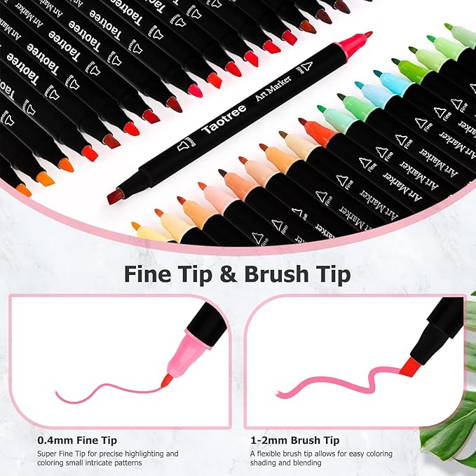 Taotree Alcohol Markers, 101 Colors Dual Tips Art Markers Pens Set, Chisel & Fine Sketch Pens, Art Supplies Kit for Artist Kids Adult Coloring Books Color, Painting, Drawing, Blending and Sketching