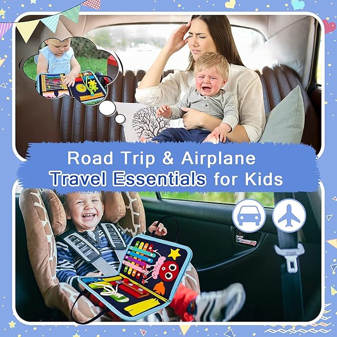 - PORTABLE TRAVEL TOY: Only 0.76 pounds of our busy board with a handle, portable for toddlers to carry. Perfect Montessori toy to keeps kids busy while on car, airplane, travel or settings needing quiet and entertained without screens.