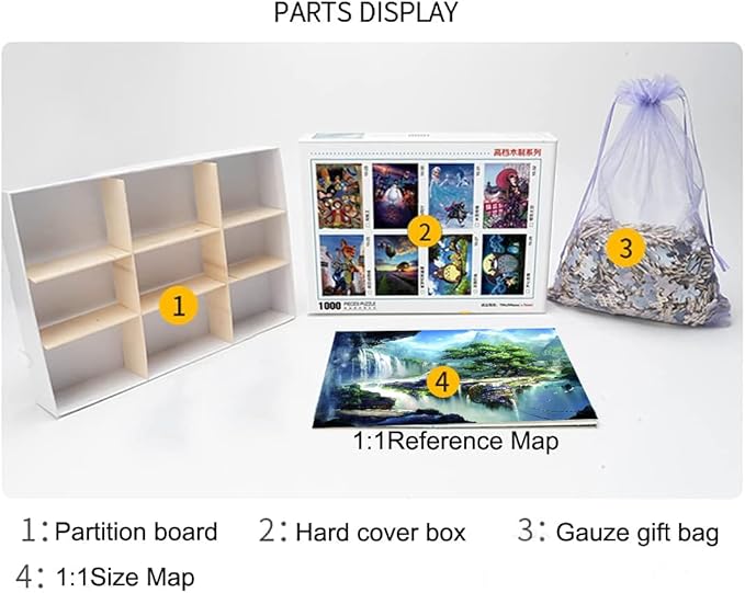 - 【Specification】Wood puzzle 1000 piece, partition board, 1:1 reference poster. Finished size: 29.5 inch x 19.7 inch (75cm*50cm) .