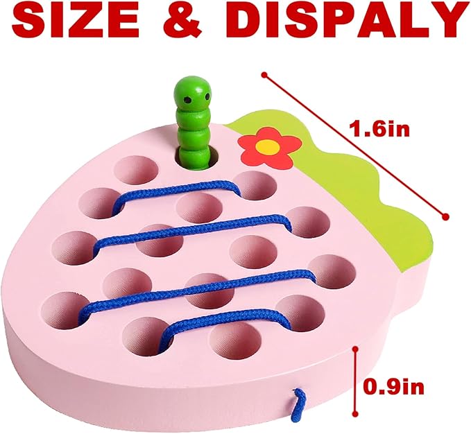 - Lacing Toys for Toddlers:The colorful strawberry design and the cute "caterpillar", the baby leads the "caterpillar" to slowly eat the strawberry, the realistic and interesting design can attract the baby's eyes first; it can help improve toddles imagination and coordination skills, and kids will love to keep busy with this montessori toy.
