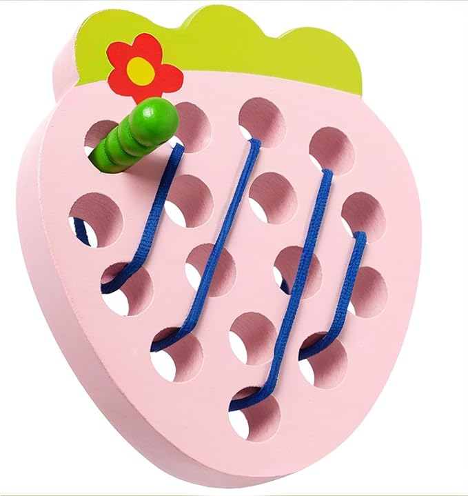 - Wooden Toys:Wooden lacing strawberry toys realistic and fun design captivates toddlers attention and encourages imaginative play It helps improve their coordination skills and it can provide enjoyable sensory experiences for children with autism.