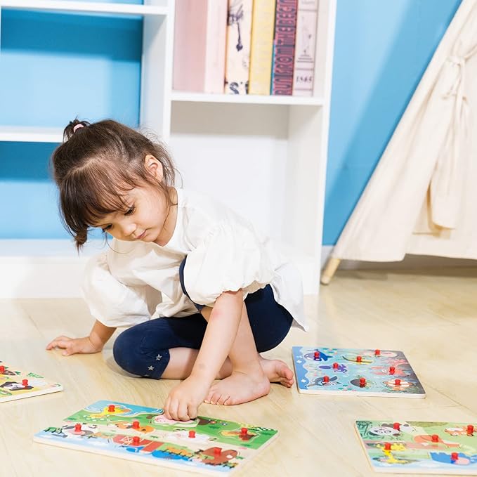 - EARLY DEVELOPMENT: Peg puzzles help toddlers recognize shapes and colors, improve eye-hand coordination, cultivate imagination and creativity, and develop patience and concentration.