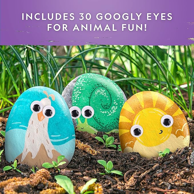 - EVERYTHING KIDS NEED - This super-fun craft kit includes everything to paint and decorate 15 rocks: 10 paint colors, 30 googly eyes & two sheets of transfer decals! Create garden stones, story stones & more with this rock painting kit.