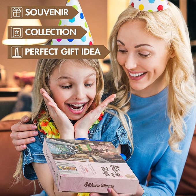 - [ Sophisticated & Adorable Details] - We use 3D water corrugated transparent PE sheet to simulate the river full of cherry blossoms. For the production of the tram, we used 1 mm cardboard, 2 mm wooden boards and translucent PE sheets to truly restore the details of the tram. So are cherry trees and signal lights.The bookshop by the river bank has added two lights, an indoor light that comes out of the window, creating and rendering the atmosphere.