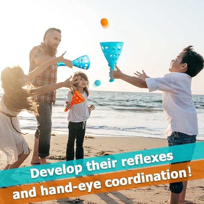 punkdog Pop and Catch Ball Game with 24 Balls and 4 Catch Launcher Baskets - Outdoor Indoor Game Activities, Christmas Beach Sport Summer Beach Toys for Kids Ages 4 5 6 7 8 10 12+