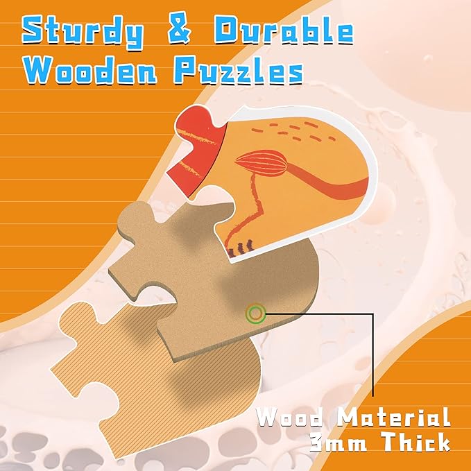 - 🦁【High Quality For Baby】Made of sturdy board from natural wood, perfect cutting makes each piece of puzzle smooth and connected firmly. High quality and eco-freindly material is absolutely safe for baby.