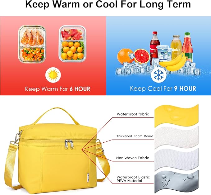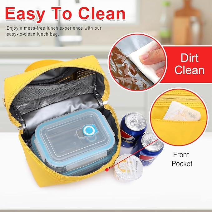- Portable and cute design: this lunch bag is made of waterproof nylon outside, it’s lightweight and tear resistant; With two ways of carrying- top handle and cross-body by a detachable and adjustable long shoulder strap.