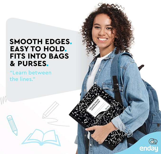 - ✓QUALITY - The college ruled composition notebook has sturdy front and back covers that protects the paper. This marble notebook with a securely sewn binding provides year-long durability. The lightweight and compact school journal fits in to a purse or briefcase nicely without being too heavy. This composition notebook college rule is a great choice for when you don’t need to tear out the pages.