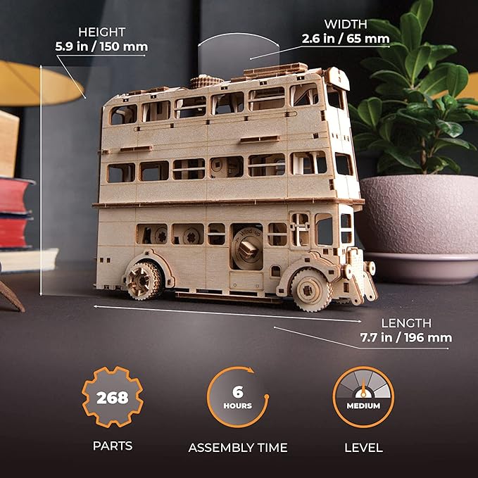 - Customizable Design: Leave the Knight Bus in its natural wood state or paint it purple to match its movie appearance; perfect for Harry Potter fans and as hobbies for adults men and women