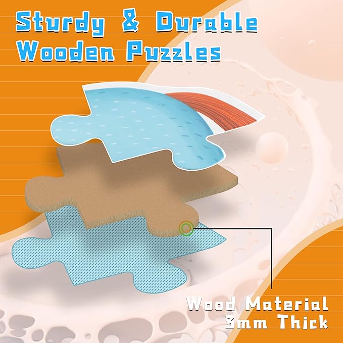 - 🐮【High Quality For Baby】Made of sturdy board from natural wood, perfect cutting makes each piece of puzzle smooth and connected firmly. High quality and eco-freindly material is absolutely safe for baby.