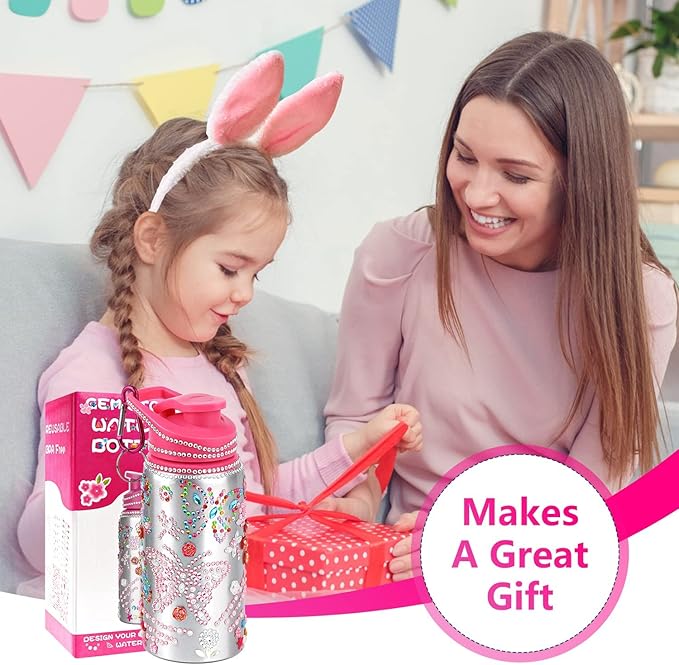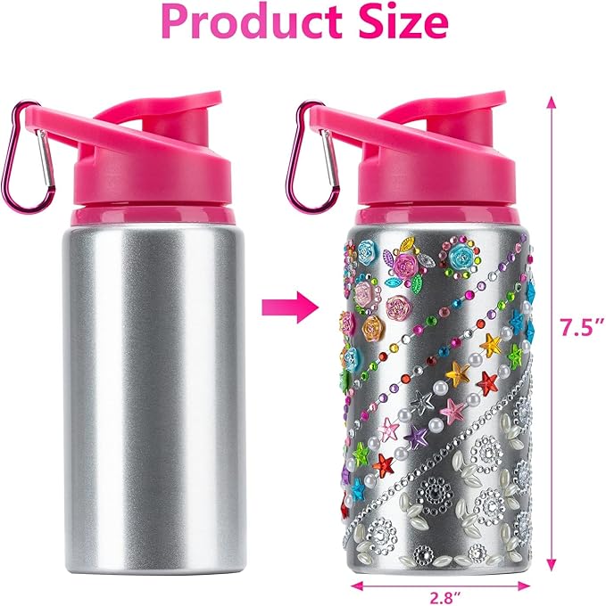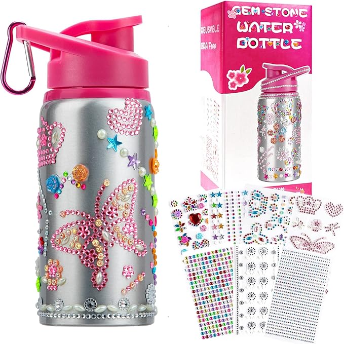 - SUPER FUN ARTS AND CRAFTS FOR KIDS! Kids love decorating their own bottle with this pink kids water bottle craft kit! It comes with 7 sheets of our sparkly rhinestone glitter gemstone stickers, giving kids hundreds of our sparkly glitter gem stickers to bling out their bottle! Plus we include a carabiner to hang the bottle.