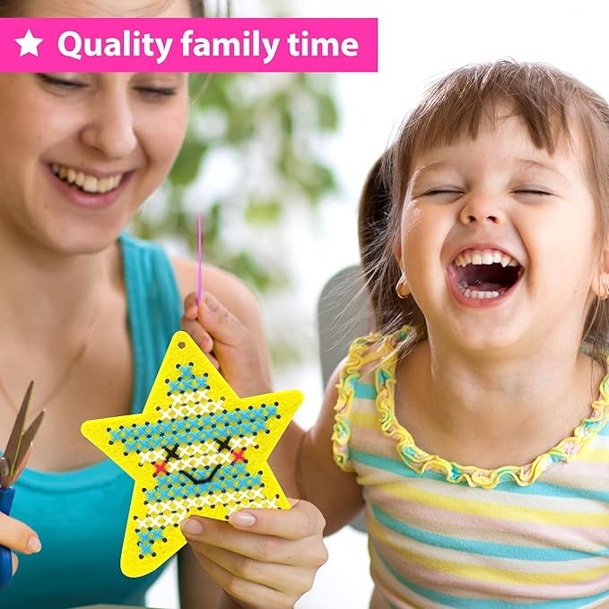 - ๐ Great For 5+ Years Old Kids ๐: Great gift for 5+ years old kids who is starting to learn cross stitching technique the first time! Families and friends can also share the fun and complete the kids arts crafts together. Learning cross-stitching, needlepoint, embroidery, crafting skills and create your cute and fun arts and crafts for girls