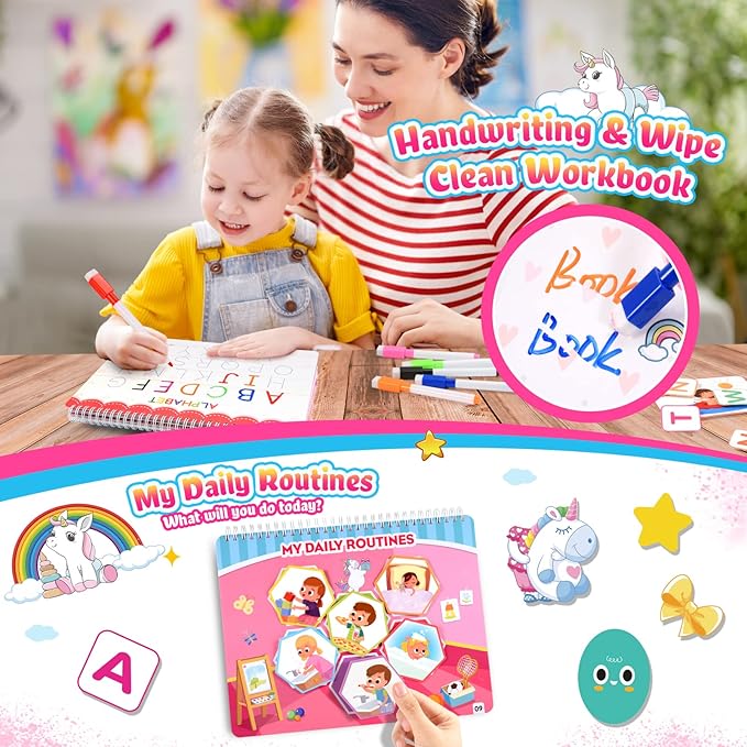 - Unicorns Gifts for Girls Age 3 - 5: Newest unicorn themes busy book comes with a visual high-quality storage bag, children can experience the fun of learning in games anytime and anywhere. Perfect unicorns gifts for girls Age 3 - 5 as birthday gifts, party toys, holiday gifts, toy prizes for carnival games
