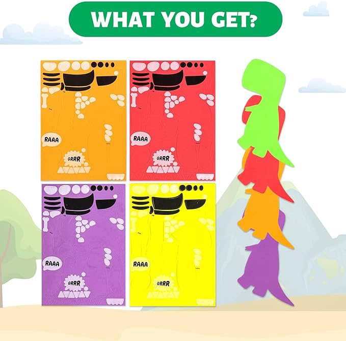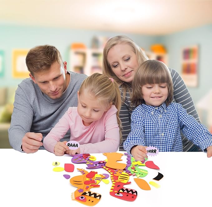 - Child-friendly and Safety: These foam crafts are made of premium soft and thick EVA foam which is green-minded, child-safe, no odor. No glue, no scissor needed, children can easily tear off perfect cut pattern and then stick on unfinished dinosaurs. Enjoy the craft time Safely!