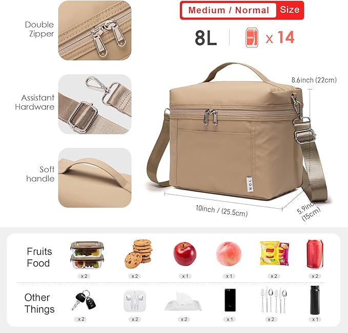 NOL Natural Organic Lifestyle Insulated Lunch Bags for Women Cooler Bag Lightweight Nylon Waterproof Lunch Box For Work