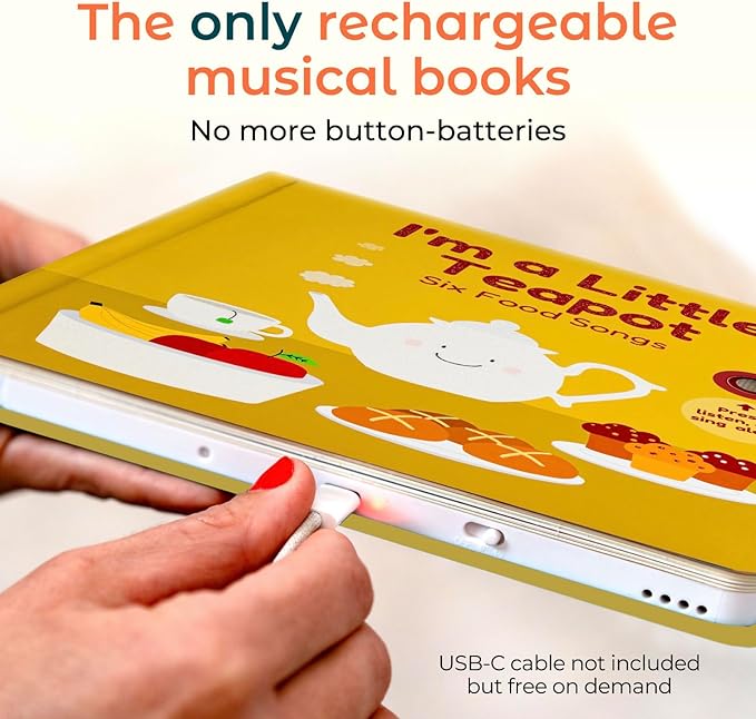 - Inspires a love for music and language: Food-themed nursery rhymes in this musical book spark joy and build foundational rhythm and vocabulary skills.