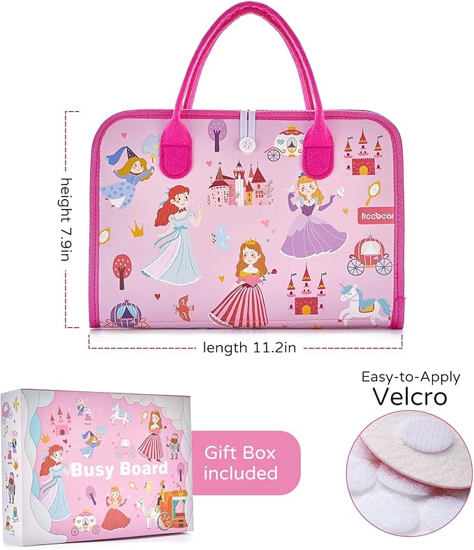 Freebear Busy Board Toddler Travel Toys Quiet Book Sensory Board for Toddlers 1 2 3 4, Montessori Educational Toys for 3 4 Year Old Girls Boys Gift, Princess