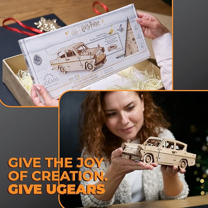 UGEARS Wooden 3D Puzzles for Adults - Flying Ford Anglia Harry Potter Puzzle 3D – Harry Potter Flying Car Building Kits for Adults DIY Model Kit with Spring Drive 244 Pcs