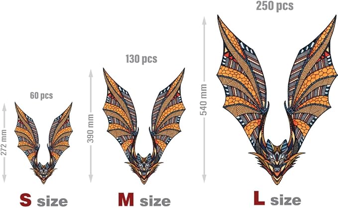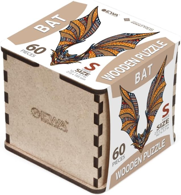 EWA Home Décor – Bat Small 60 Pieces – Wooden Jigsaw Puzzle for Adults – Perfect for Artistic Home Decoration and Mindful Relaxation