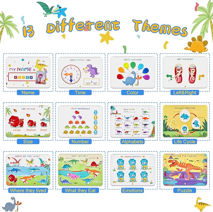 Freebear Busy Book for Toddlers Preschool Learning Activities Resources Autism Sensory Montessori Toys for 2-3 Year Old,Travel Toys, Gifts for Girls and Boys 4 5 6 Years (Dinosaur World)