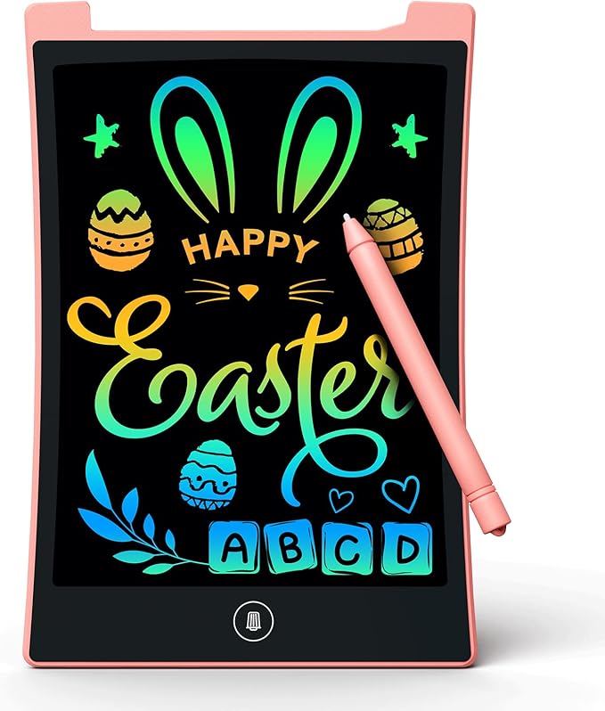 - 10 Inch Colorful Lcd writing Tablet: You can write on the LCD with stylus or anything else that creates pressure. As sleek as writing on paper. You can draw a very thin line and a thicker line to make things look different. With erase button on the front and lock switch. You can draw and erase easily by pressing the button on the front of the board. The pen fits snug on top of tablet and it will not come loose.