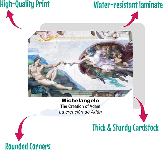 - LEARN ARTISTS & TITLES IN TWO LANGUAGES: Each card includes the artwork's title and artist's name in both English and Spanish, enhancing bilingual vocabulary and cultural knowledge.
