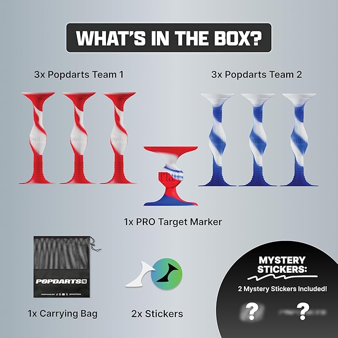 Popdarts USA Themed PRO Pack Game Set (Red White Blue Wigglenobber Target Marker) - Indoor, Outdoor Suction Cup Throwing Game - Competition with a POP