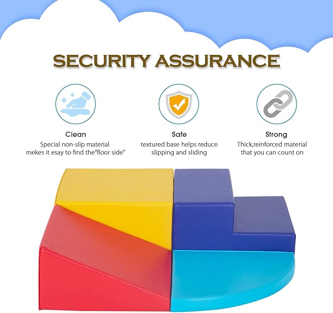 - EASY to MAINTAIN:The corner climber for babies is resistant to stains and wear, thanks to toddler climbing’s easy to clean vinyl surface, which can be wiped clean with a wet cloth. A simple cleaning can get a clean, soft play equipment.