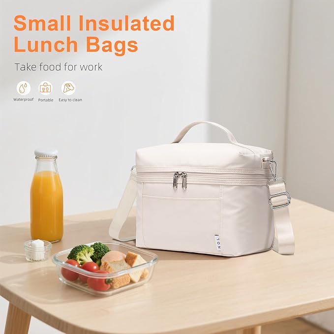 NOL Natural Organic Lifestyle Insulated Lunch Bags for Women Cooler Bag Lightweight Nylon Waterproof Lunch Box For Work (Small, Cream)
