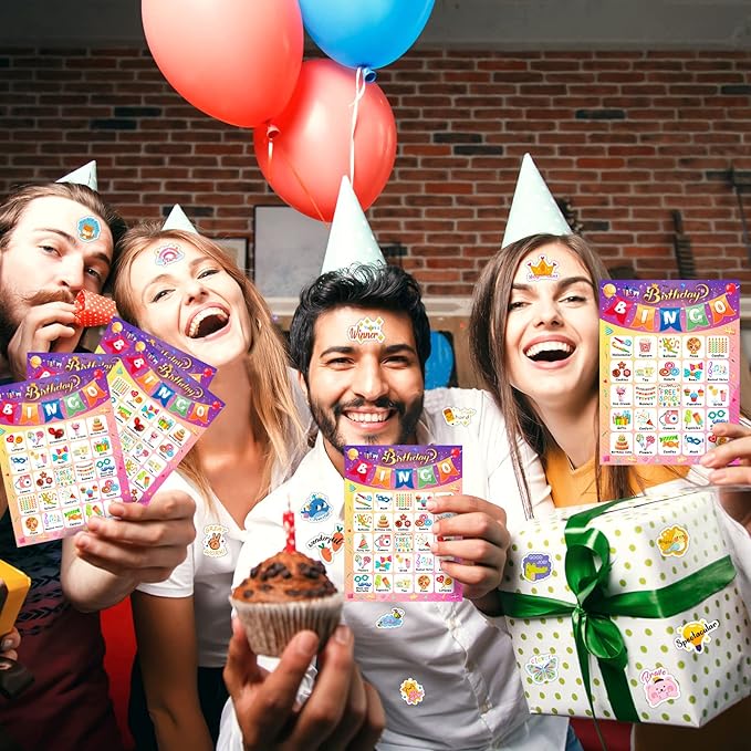 - Vibrant colors&patterns: This happy birthday bingo game for adults is made by high quality & non-toxic cardboard and it is easy to cut along the dotted lines of chips sheets and calling cards sheet